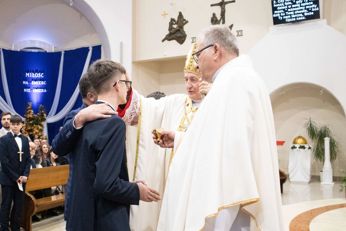 Biskup tarnowski Andrzej Jeż bierzmował 23 kwietnia młodych w świątyni pw. św. Jana Pawła II w Słopnicach Dolnych.