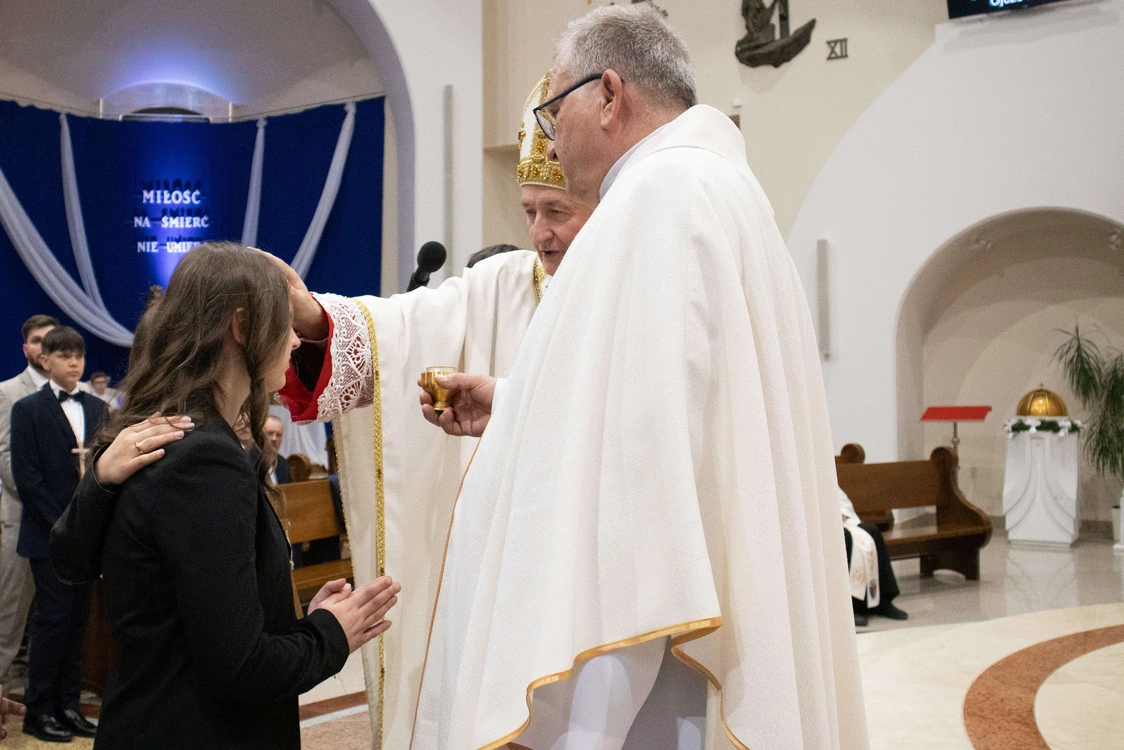 Biskup tarnowski Andrzej Jeż bierzmował 23 kwietnia młodych w świątyni pw. św. Jana Pawła II w Słopnicach Dolnych.