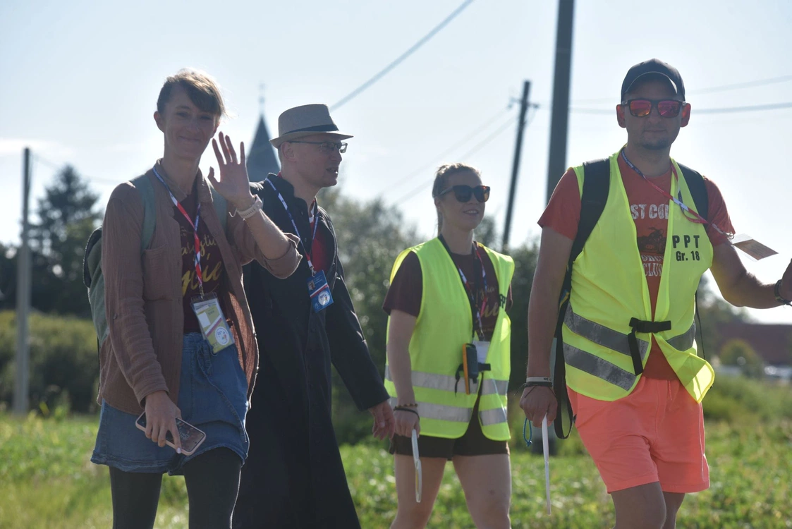 Grupa 18 na szlaku drugiego dnia pielgrzymowania.