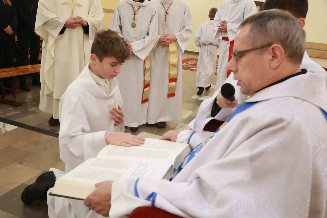 W kościele w Szymbarku 21.11.2025 do pełnienia funkcji parafialnych lektorów zostało pobłogosławionych 43 chłopców z parafii dekanatu Ropa.