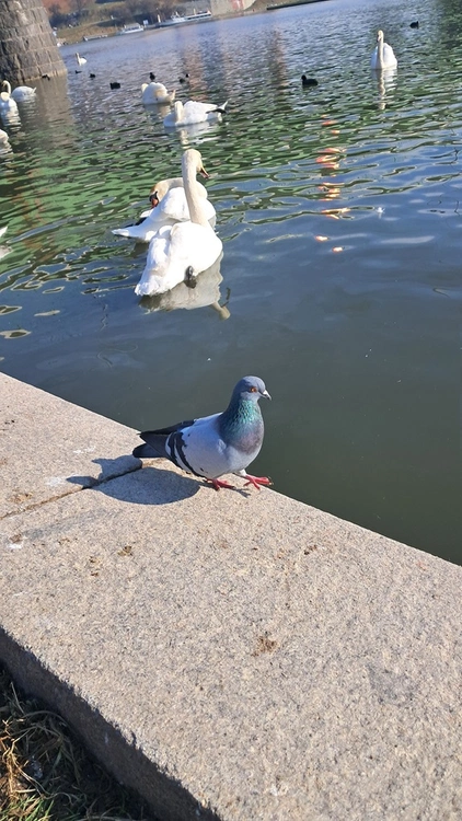 Pewnego dnia mały ptaszek zobaczył piękny widok. Wschodzące słońce zabarwiło chmury na różowo, w tafli wody odbijały się ciepłe promienie słońca, które obudziły ptaszka. Wzleciał on w niebo i zobaczył piękne łabędzie płynące w górę rzeki.